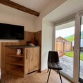 This spacious, light-filled apartment comfortably accommodates up to 6 guests. The living and dining area features a comfortable box-spring sofa bed and a modern fitted kitchen with an additional pantry. The main bedroom offers a cozy box-spring bed and breathtaking views of the majestic Kitzsteinhorn. A separate bathroom includes a shower and toilet, while an adjoining double room provides space for two people, with its own bathroom (shower/toilet) and a terrace overlooking the surrounding mountains.