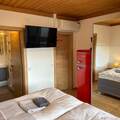 This charming attic room provides a cosy and functional retreat, ideal for guests seeking peace and nature. The combined living and sleeping area features a double bed, along with essential appliances such as a kettle, coffee maker, and fridge-freezer. The modern bathroom includes a shower, sink, and toilet, while integrated air conditioning ensures a comfortable climate all year round. Guests can also relax on the balcony.