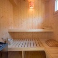 Ground floor: Living room(TV(satellite), gas fireplace), open kitchen(electric kettle, toaster, cooker(ceramic), coffee machine(filter), oven, grill, dishwasher, fridge-freezer, dishes and cutlery(Bowls, chopsticks, plates, cups, etc.)), bathroom(shower, sauna, washbasin, hairdryer), Internet access