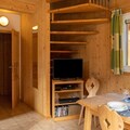 The chalet offers a cozy living/dining room with an extra sofa bed, a well-equipped kitchen and on the first floor 2 spacious bedrooms and 1 bathroom. From the living room you have direct access to the large and partially covered terrace. There is a wonderful garden surrounding the house and parking is available directly at the chalet.