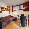 The accommodation is equipped with the following items: hair dryer, balcony, open-air parking in the same building. The open plan kitchen, is equipped with refrigerator, microwave, oven, dishes/cutlery, kitchen utensils and toaster.