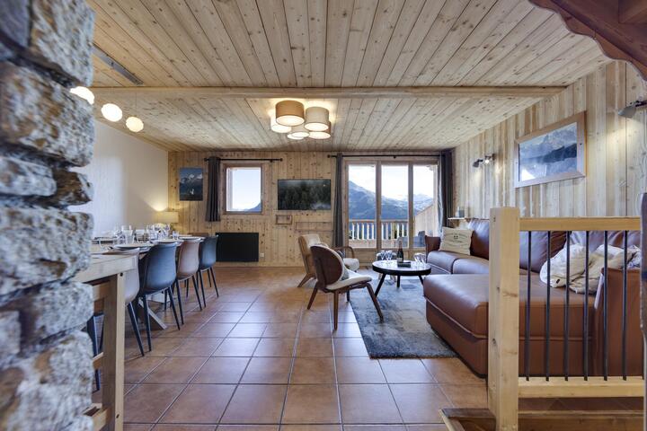 Discover this superb apartment, freshly renovated in spring 2025. It is located in the Chalets du Kandahar, charming chalets close to the ski slopes. Facing due south, it features several terraces and balconies where you can enjoy its exceptional view of the surrounding mountains and valleys.