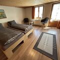 Comfortably furnished 2.5 room apartment with four beds. Dining room with dining table and kitchen (among other things furnished with ceramic hob, oven, refrigerator with freezing compartment, coffee machine with capsules as well as fondue- and raclette-set). 1 bedroom / living room with 2 single beds pushed together (2x90x190cm), TV and 2 small sofas. 1 bedroom with 2 single beds (each 90x190cm) and TV. 1 bathroom with shower and toilet. WLAN.