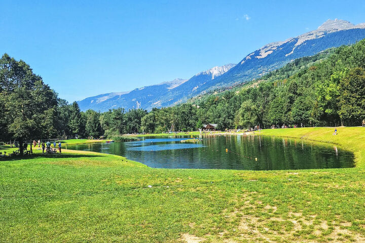 Bellentre: Chalet "les Pommiers", 3 storeys. In the district of Le Gothard, Bellentre, in a quiet position, 250 m from the lake, 8 km from the skiing area, 250 m from the river, south-west facing position. Parking (for 2 cars) at the house. Supermarket 4 km, restaurant 1 km, bakery 1 km, bus stop "NAVETTE ONLY IN A SUMMER TIME" 350 m, railway station "AIME" 4 km. Nearby attractions: Funiculaire Bourg Saint Maurice/Les Arcs 9.1 km. Well-known ski regions can easily be reached: Paradiski (LES ARCS - LA PLAGNE) 8 km, Tignes & Val d'Isère 40 km, La Rosière 28 km. Well-known lakes can easily be reached: Plan d'eau de Macot 250 m.
