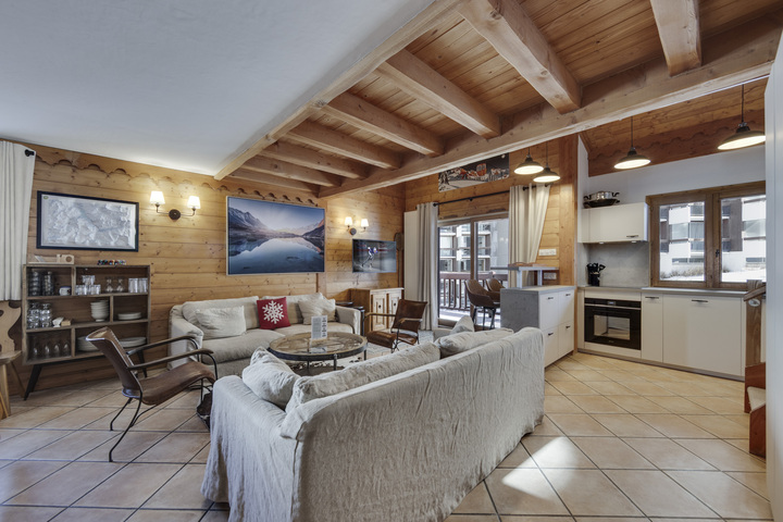 With a surface area of 90m², the Ecrin des Neiges A321 duplex flat has 2 levels and a traditional mountain atmosphere. It has 4 bedrooms as follows : 1 double bedroom, 1 shower room and 1 separate WC on the ground floor, as well as 3 double bedrooms upstairs, one of which is en suite, and finally 1 bathroom with its own WC. The living area features a kitchen opening onto the lounge and dining area, as well as a balcony terrace.