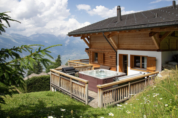 Very beautiful chalet "Etoile", 3 storeys. In the district of Les Clèves, on the outskirts, 2 km from the centre of Nendaz sur les pistes, in a quiet, sunny position, 300 m from the skiing area, in a cul-de-sac. Private: garden with lawn. Hot tub. Available: sledges for children. Motor access to the house, except in winter 500 m (via unmade road, mountain road). In Winter: please take snow chains, 4x4 car recommended in winter. Parking (for 2 cars) at 500 m. Shop 1.8 km, supermarket 2.4 km, restaurant 400 m, bakery 1.9 km, bus stop "Haute-Nendaz, bif. Le Déserteur" 1.8 km, railway station "Sion" 18.4 km, outdoor swimming pool 3 km. Golf course (18 hole) 20 km, tennis 3 km, gondola lift 2.2 km, slopes 300 m, ski bus stop 1.8 km, children's playground 2.9 km. Nearby attractions: Domaine des Iles 20 km, Alaïa Bay - Surf Park 17 km. Well-known ski regions can easily be reached: Nendaz Tracouet 4 Vallées 300 m. Hiking paths: Bisse Vieux 600 m. Please note: In case of good snow conditions, the house is accessible on skis.