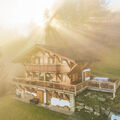 "Etoile", 6-room chalet 220 m2 on 3 levels. Spacious, comfortable and tasteful furnishings: living room with open-hearth fireplace and cable TV. Exit to the terrace, east facing position. Living/dining room with open-hearth fireplace and cable TV. Exit to the balcony, north facing position. Open kitchen (oven, dishwasher, 4 induction hot plates, toaster, kettle, microwave, electric coffee machine, Capsules for coffee machine (Nespresso) extra, raclette grill, fondue Set (chinoise, cheese)). On the lower ground floor: entrance hall. 2 rooms, each room with 2 beds (90 cm, length 200 cm), shower/WC. Sep. WC. Underfloor heating. Upper floor: 2 rooms, each room with 1 double bed (2 x 90 cm, length 200 cm), bath/shower/WC and double hand-basin. Exit to the balcony, north facing position. Balcony, terrace. Terrace furniture, barbecue. Marvellous panoramic view of the mountains. Facilities: washing machine, dryer, iron, hair dryer. Internet (WiFi, free). Parking (2 cars), in winter at 500 m. Please note: non-smokers only.
