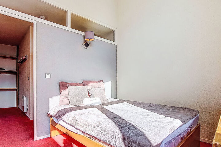 3-room maisonette 44 m2 on 7th floor, south facing position. Comfortable furnishings: living/dining room with 1 bed (80 cm, length 190 cm), 1 pull-out bed (2 pers. 2 x 80 cm, length 190 cm), TV. Exit to the balcony, south facing position. Kitchenette in the entrance (2 hot plates, dishwasher, toaster, kettle, microwave, electric coffee machine) with dining table. Bathroom, sep. WC. Electric heating. Upper floor: (spiral staircase), 1 room with 1 x 2 bunk beds (80 cm, length 190 cm), 1 double bed (1 x 140 cm, length 190 cm). Exit to the balcony, south facing position. Sleeping alcove with 1 x 2 bunk beds (80 cm, length 190 cm). Shower/WC. Electric heating. Carpet. Large balcony 4 m2, south facing position. Very beautiful panoramic view of the mountains, the valley and the ski run. Facilities: safe, children's high chair, baby cot (extra), hair dryer. Internet (WiFi, extra). Please note: suitable for families. Fridge without freezer, non-smokers only. Smoke alarm. Offer by a private individual according to Art. 155, IV of CGI.