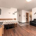 "Apartments Ambiente", 16-room house on 3 levels. Modern and tasteful furnishings: entrance hall. Gallery with open-hearth fireplace and TV (flat screen). Upper floor: dining room with dining table and kitchen corner. Exit to the terrace. 6 double bedrooms, each room with shower/WC and TV. Exit to the balcony. 2 double bedrooms, each room with shower/WC and TV. 4 rooms, each room with 1 double sofabed, dining nook and kitchen corner. Parquet floors. Balcony furniture. Beautiful view of the mountains. Facilities: Internet (WiFi, free). Please note: non-smoking house. Maximum 3 pets/ dogs allowed. Smoke alarm, no lift. Group accommodation consisting of 8 separate apartments. The Ötztal Card is included in summer and the Niederthai Card in winter, with a breakfast buffet in the common room.