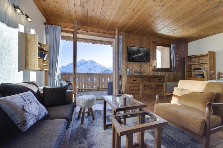 Discover this superb apartment. It is located in the Chalets du Kandahar, charming chalets close to the ski slopes. Facing due south, it features several terraces and balconies where you can enjoy its exceptional view of the surrounding mountains and valleys.