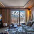 Living area: This spacious and light-filled living area offers breathtaking panoramic views over the entire resort. It features a fully equipped kitchen, two cozy lounge areas, and a welcoming dining space. At its center, a fireplace adds a warm, inviting touch — perfect for relaxing after a day on the slopes. The 65 sq.m space opens onto a large terrace and two balconies, extending the alpine panorama into your everyday moments.