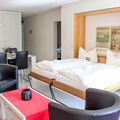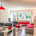 "Seewiese Apt. 103", 2-room apartment 60 m2 on 1st floor. Comfortable and cosy furnishings: living/dining room with 2 sofabeds, 2 fold-away beds and cable TV (flat screen). Exit to the balcony. 1 double bedroom. Kitchen (oven, dishwasher, 4 ceramic glass hob hotplates, toaster, kettle, microwave, electric coffee machine, Capsules for coffee machine (Nespresso) extra, raclette grill, fondue Set (cheese)). Bath/WC. Balcony 9 m2. Balcony furniture, deck chairs (1). Side view of the mountains and the countryside. Facilities: Internet (WiFi, free). Garage space n 103 at the house, height 190 cm. Please note: non-smokers only.