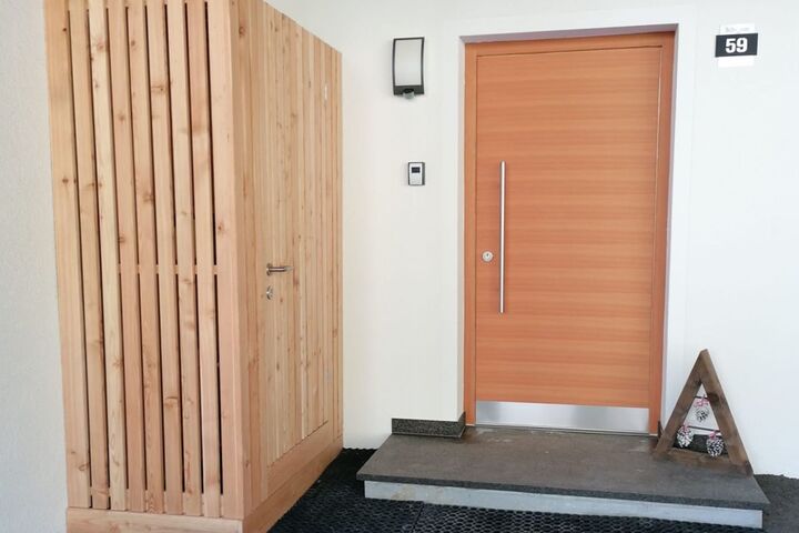 "3 Zimmer", 3-room apartment 65 m2 on 1st floor. Modern and cosy furnishings: living/sleeping room with 1 sofabed and TV. 1 double bedroom. 1 children's room with 2 beds. Open kitchen (oven, dishwasher, 4 ceramic glass hob hotplates, toaster, kettle, microwave, electric coffee machine). Shower/WC. Wood heating. Beautiful view of the mountains. Facilities: Internet (WiFi, free). Please note: non-smokers only. Smoke alarm.
