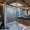 Bathroom 1: Shower, Towel dryer, Single hand basin, and Toilet