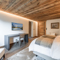 Superb chalet for 10 people located in Les Praz plain, combining tradition and modernity with brushed wood and high-end amenities such as a sauna, an outdoor jacuzzi, and a TV room, all with a breathtaking view of Mont Blanc.