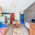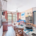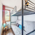 "Bâtiment A", 3-room apartment 40 m2 on 3rd floor, north facing position. Cosy furnishings: living/dining room with 1 pull-out bed (2 pers. 2 x 80 cm, length 190 cm), TV (flat screen). Exit to the balcony. 1 room, north facing position with 1 french bed (140 cm, length 190 cm), TV (flat screen). 1 room with 1 sofabed (130 cm, length 190 cm), 1 x 1 bunk beds (90 cm, length 190 cm). Kitchenette (oven, dishwasher, kettle, microwave, freezer, electric coffee machine). Bathroom, sep. WC. Electric heating. Balcony 6 m2, north facing position. Balcony furniture. Beautiful view of the valley. Facilities: washing machine. Internet (WiFi, extra). Please note: non-smokers only. Smoke alarm.