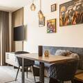 This apartment comfortably accommodates up to 4 people. It features a bedroom, a bathroom with a shower and WC (hairdryer provided), a kitchenette, and a balcony/terrace. Enjoy restful sleep in the comfortable double bed, while the 29m² living and dining area offers a double sofa bed for two additional guests.
