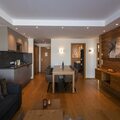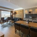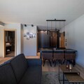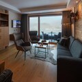 Living room(double sofa bed, TV, dining table), Kitchen(electric kettle, cooker(induction), coffee machine(cups), microwave, dishwasher, fridge-freezer), bedroom(double bed), bedroom(double bed), bathroom(shower, toilet, hairdryer), bathroom(bathtub or shower, toilet, hairdryer), sauna(shared with other guests), balcony, parking, swimming pool(shared with other guests)
