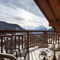 Living room(double sofa bed(140 x 200 cm), TV(flatscreen), seating area), open kitchen(hob(ceramic), electric kettle, toaster, coffee machine, oven, microwave, dishwasher, fridge, dishes and cutlery), bedroom(single bed(80 x 190 cm), single bed(80 x 190 cm)), Bedroom with bathroom(double bed(160 x 200 cm), shower, toilet), Cabin(bunk bed(80 x 190 cm)), bathroom(bath tub), toilet(toilet), balcony, Mountain view