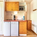 The electric kitchen is thoughtfully stocked with a refrigerator, microwave, dishwasher, coffee machine, toaster, kettle, and all necessary utensils. Whether you're preparing a quick breakfast or a hearty dinner, this studio provides everything needed for a comfortable and functional mountain escape.