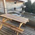 Living room(double bed, double sofa bed, bunk bed, TV), Kitchen(electric kettle, toaster, coffee machine, microwave, dishwasher, fridge, Juicer, dishes and cutlery), bathroom(bath tub), Garden Furniture , washing machine, balcony, parking, hairdryer
