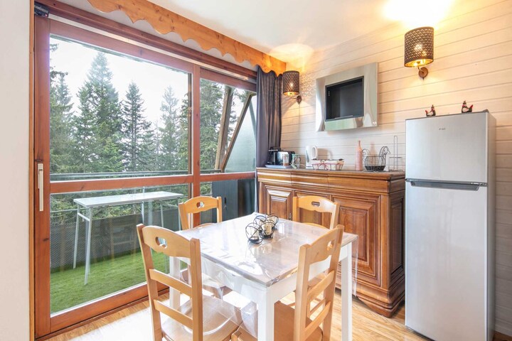 This cozy and luminous one-bedroom apartment offers a snug 33 m² space, ideal for up to five guests. Positioned right at the foot of the ski slopes, it delivers breathtaking mountain views and a peaceful alpine atmosphere. The private balcony, furnished for comfort, invites you to unwind and enjoy the scenery. With central heating and a washing machine, the apartment ensures a warm and practical stay throughout your visit.