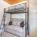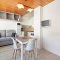 The open-plan electric kitchen is fully equipped with a refrigerator, microwave, dishes, cutlery, and a coffee machine, offering everything needed to prepare meals during your stay. Whether you're planning a quick breakfast before hitting the slopes or a cozy dinner afterward, the kitchen has you covered. With its prime location, modern amenities, and cozy atmosphere, this studio provides a fantastic base for your mountain getaway.