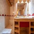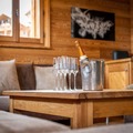 The main entrance to the lovingly designed chalet is on the first floor, with a ski room right next to it. The living and dining room is on this floor and is flooded with light thanks to the large windows. The focal point of the room, the beautiful stone fireplace, creates a cosy atmosphere. The solid dining table is large enough to accommodate all guests, while an open window to the kitchen ensures that those cooking can keep in touch with those in the living room. Spread over 3 floors, the chalet has 6 bedrooms, each with its own bathroom and direct access to a balcony or even straight onto the slopes.