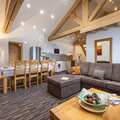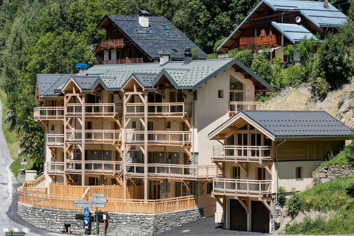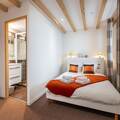 This apartment is on the 3rd floor (elevator available), the apartment itself is spread over 2 floors and offers an exceptional view of the Nancroix valley, the mountains, spruce forests and the Massif de la Vanoise. From the large living area with open kitchen, a steep staircase leads to the sleeping gallery with sofa bed, a bedroom with private bathroom is on the level of the living room, three bedrooms, each with private bathroom, are on the upper floor of the apartment.