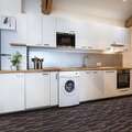On the 3rd floor: Kitchenette(electric kettle, toaster, cooker(induction), coffee machine(cups, filter), oven, microwave, dishwasher, fridge-freezer, tumble dryer, washing machine), Living/diningroom(50 m2)(double sofa bed, TV), Bedroom with bathroom(double bed(160 x 200 cm), shower(walk-in shower), toilet)
