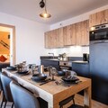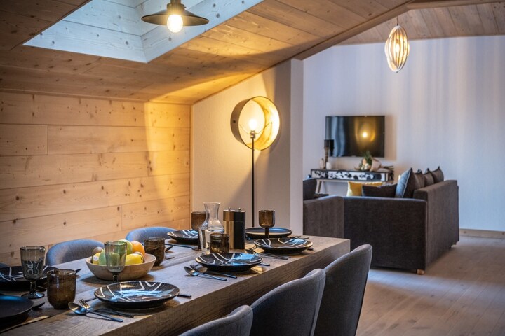 In addition to the excellent location, the apartment features a fully equipped kitchen and designer furnishings that blend contemporary comfort with a cozy mountain feel. The property offers premium services including gourmet breakfasts, snacks, and a convivial dining bar, along with lively entertainment to enhance your stay.