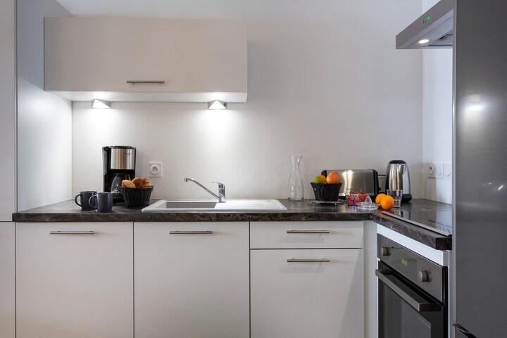 Nestled in a peaceful area, this holiday home is located near the renowned Paradiski ski area, one of the largest ski domains in Europe. The ski-in/ski-out access gives you seamless connections to a vast network of slopes, from the Bellecôte glacier to the lush forests below. Additionally, the charming Plagne 1800 village, known as the "nest of La Plagne," offers a tranquil atmosphere, perfect for unwinding after a day on the slopes. Nearby cafés, restaurants, and markets provide a range of options for dining and shopping. Public transport stations, including bus stops and train stations, are easily accessible for further exploration.