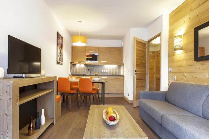Free kids package for rental (on request and depending on availability, under 2 years of age).Tucked into the snowy slopes of Les Menuires, Résidence Le Coeur des Loges blends traditional Savoyard elegance with modern comfort. Built in natural wood and stone, this spacious apartment offers a welcoming living area with a sofa bed, a well-equipped kitchenette, and a private balcony to soak in breathtaking Alpine views. Whether you're relaxing by the fireplace or unwinding in the heated indoor pool, this is the perfect retreat for families, friends—and their pets!