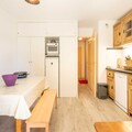 The electric kitchen is fully equipped with a refrigerator, microwave, oven, freezer, dishwasher, coffee machine, toaster, kettle, and all necessary dishes and utensils—perfect for preparing meals with ease. Whether you're skiing, hiking, or simply unwinding, this apartment offers everything needed for a memorable mountain getaway.