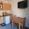 The modern kitchen features a refrigerator, microwave, coffee machine, and all essential utensils—perfect for preparing meals with ease. A hair dryer is also provided for added comfort. Whether you're here to ski, hike, or simply recharge, this studio offers everything needed for a memorable mountain escape.