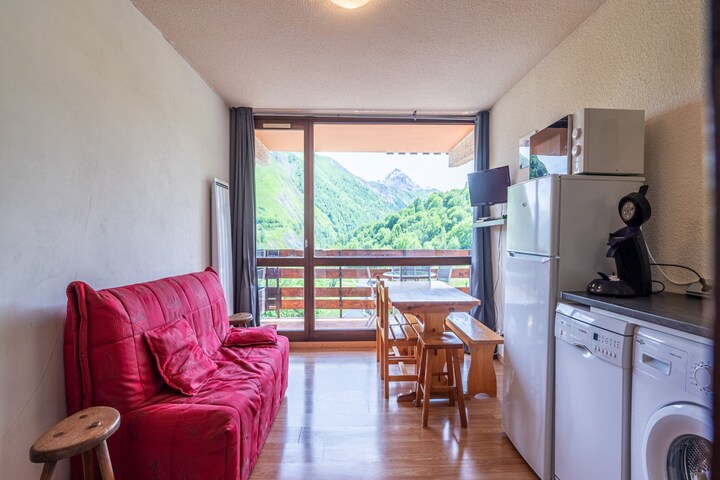 This cozy and light-filled 35 m² apartment in Saint-Sorlin-d'Arves offers a comfortable retreat for up to seven guests. With one bedroom and additional sleeping arrangements, it’s ideal for families or small groups seeking a peaceful alpine escape. Located in a family-friendly zone with stunning views of the mountains and slopes, the property is just steps from local amenities—250 meters from Pizzeria L'Aroma, 400 meters from Sherpa supermarket, and 350 meters from the ski resort.