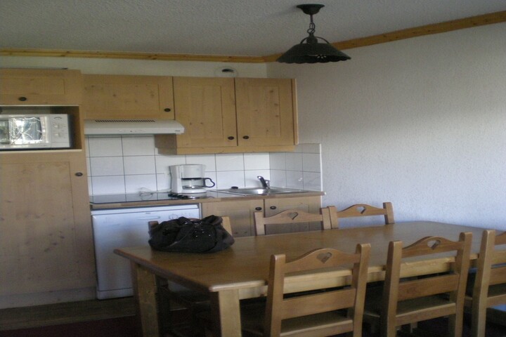 Escape to a cozy mountain retreat in the heart of Notre Dame de Bellecombe. This charming apartment, nestled in a traditional chalet-style complex, offers a warm and inviting interior with wooden accents and ample natural light. The open-plan living and dining area features a comfy sofa bed and satellite TV, while the fully equipped kitchen includes a ceramic cooker, combination microwave, dishwasher, and a spacious American fridge—perfect for preparing hearty post-ski meals.