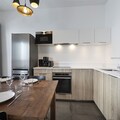 The apartment features a fully equipped kitchen, allowing guests to prepare meals after a day of exploring the slopes. The open-plan living space provides ample room for relaxation, while the bathroom includes all the necessary amenities for a comfortable stay.
