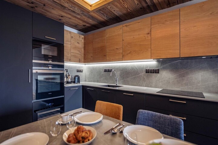 Inside, the chalet features a warm and functional layout with a fully equipped kitchen, a cozy living room with a flat-screen TV, and a mix of bedrooms and cabins ideal for both adults and children. With multiple bathrooms, including one en-suite, and a large 50 m² terrace, there’s plenty of space to relax after a day on the mountain.
