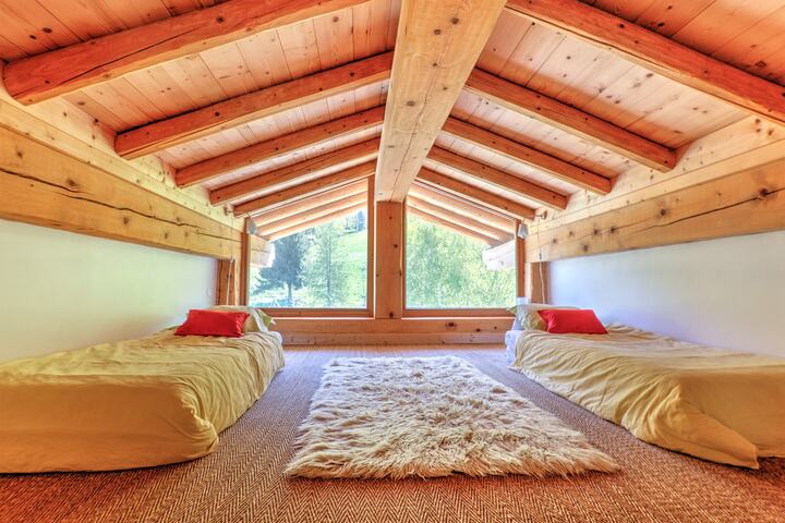 Luxurious independent chalet, close to the slopes (about 150m), with fireplace, sauna, jacuzzi and internet access. Experience the harmony of the small traditional village of La Millerette (located below Arc 1600 with its own funicular stop just 50m away) while enjoying great skiing in Les Arcs.