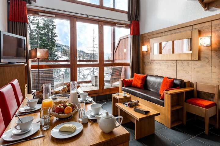 The apartments are centrally located in Arc 1600, the ideal destination for families with smaller children. After all, the village is traffic-free and not too big. You can easily ski to your accommodation here, regardless of your level. The slopes are between the trees and can be artificially snowed; snow security therefore trumps.