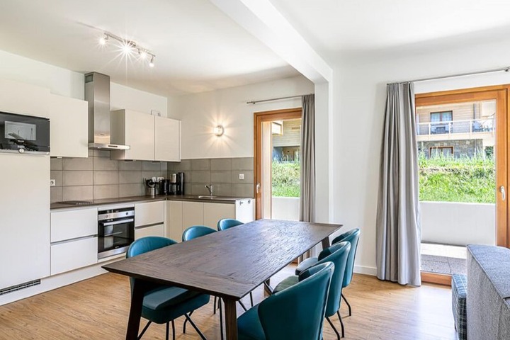 Wake up surrounded by mountain air, forest scents, and the soft glow of alpine sunlight. This stylish 6-person apartment is designed for comfort and connection—with a plush living area (Bluetooth soundbar included for your playlist!), a sleek modern kitchen for culinary adventures, and three cozy bedrooms with twin beds for peaceful slumber. Two modern bathrooms (plus a separate toilet!) keep mornings easy, whether you’re a group of friends or a family with little explorers.