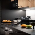 Living room(double sofa bed(140 x 200 cm), TV(flatscreen), seating area), open kitchen(hob(ceramic), electric kettle, toaster, coffee machine, oven, microwave, dishwasher, fridge, dishes and cutlery), bedroom(double bed(160 x 200 cm)), bedroom(single bed(80 x 200 cm), single bed(80 x 200 cm)), bathroom(bathtub or shower), toilet(toilet), balcony