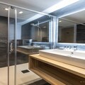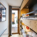Living room(double sofa bed(140 x 200 cm), TV(flatscreen), seating area), open kitchen(hob(ceramic), electric kettle, toaster, coffee machine, oven, microwave, dishwasher, fridge, dishes and cutlery), bedroom(double bed(160 x 200 cm)), bedroom(single bed(80 x 200 cm), single bed(80 x 200 cm)), Cabin(bunk bed(80 x 200 cm)), bathroom(bathtub or shower), bathroom(bathtub or shower), toilet(toilet), balcony or terrace