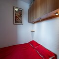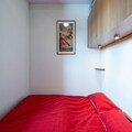 The sleeping arrangements are thoughtfully designed: a cabin with two single beds (90x190) perfect for children or friends, and a snug bedroom with a double bed (140x190) for restful nights. The modern bathroom features a shower, towel dryer, and separate WC, while added conveniences like WiFi, a washing machine, and full bedding ensure a hassle-free stay.