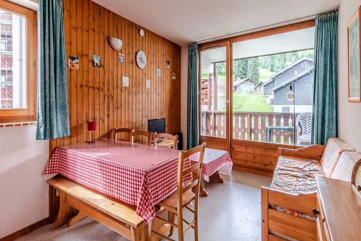 Open-air parking in the adjoining building adds convenience, and the apartment’s tranquil atmosphere makes it a perfect base for families, couples, or small groups looking to explore the Grand Massif region.