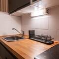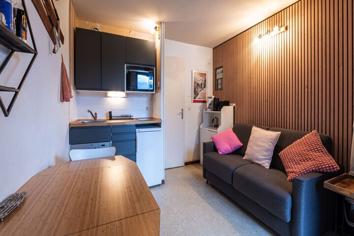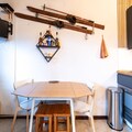 Inside, the open-plan kitchen is fully equipped with a refrigerator, microwave, dishwasher, coffee machine, toaster, and kettle—perfect for self-catering. All utensils and dishes are provided, making meal prep simple and stress-free. With modern amenities and unbeatable access to the slopes, this studio is a smart choice for a memorable mountain holiday.