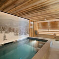 The Chalet Grâce Dieu, ideally located between the Cospillot area and the center of Courchevel 1850, is a contemporary and family-friendly retreat. Designed to comfortably accommodate family and friends, it offers high-end amenities, including an indoor swimming pool and a sauna, for holidays dedicated to relaxation and well-being.