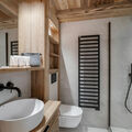 Bathroom 1: Walk-in shower, Towel dryer, Single hand basin, and Toilet