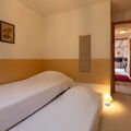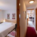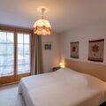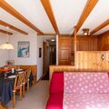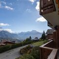 "Chaperon Rouge B5", 3-room apartment 65 m2 on 1st floor, south facing position. Practical and cosy furnishings: living/dining room with open-hearth fireplace, dining table and TV. Exit to the balcony, south facing position. 1 room with 1 pull-out bed (2 x 90 cm, length 190 cm). 1 room with 2 beds (90 cm, length 200 cm), bath/WC. Exit to the balcony, east facing position. Open kitchen (4 hot plates, oven, dishwasher, toaster, microwave, electric coffee machine, Capsules for coffee machine (Nespresso) extra, raclette grill, fondue Set (cheese)). Shower/WC. Carpet. Balcony 10 m2, south facing position. Balcony furniture. Very beautiful view of the mountains and the countryside. Facilities: iron, hair dryer. Internet (WiFi, free). Garage space n 19 (1 car). Please note: non-smokers only. No lift.